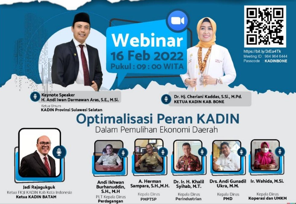Bone,Globalterkini.Com| Kamar Dagang Indonesia (Kadin) Bone menggelar Webinar, Rabu 16 Februari 2022.