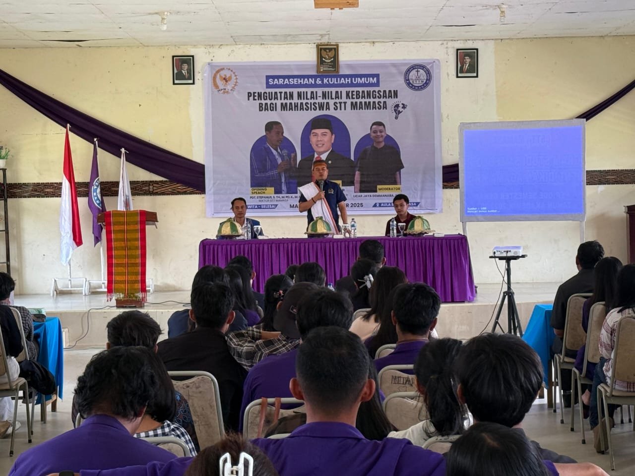 Mamasa, Global Terkini- Anggota DPR RI Dapil Sulawesi Barat, Ajbar, hadir sebagai narasumber dalam kuliah umum dan sarasehan bertema “Penguatan Nilai-Nilai Kebangsaan bagi Mahasiswa STT Mamasa”, Selasa, 14 Oktober 2025, di Aula STT Mamasa.