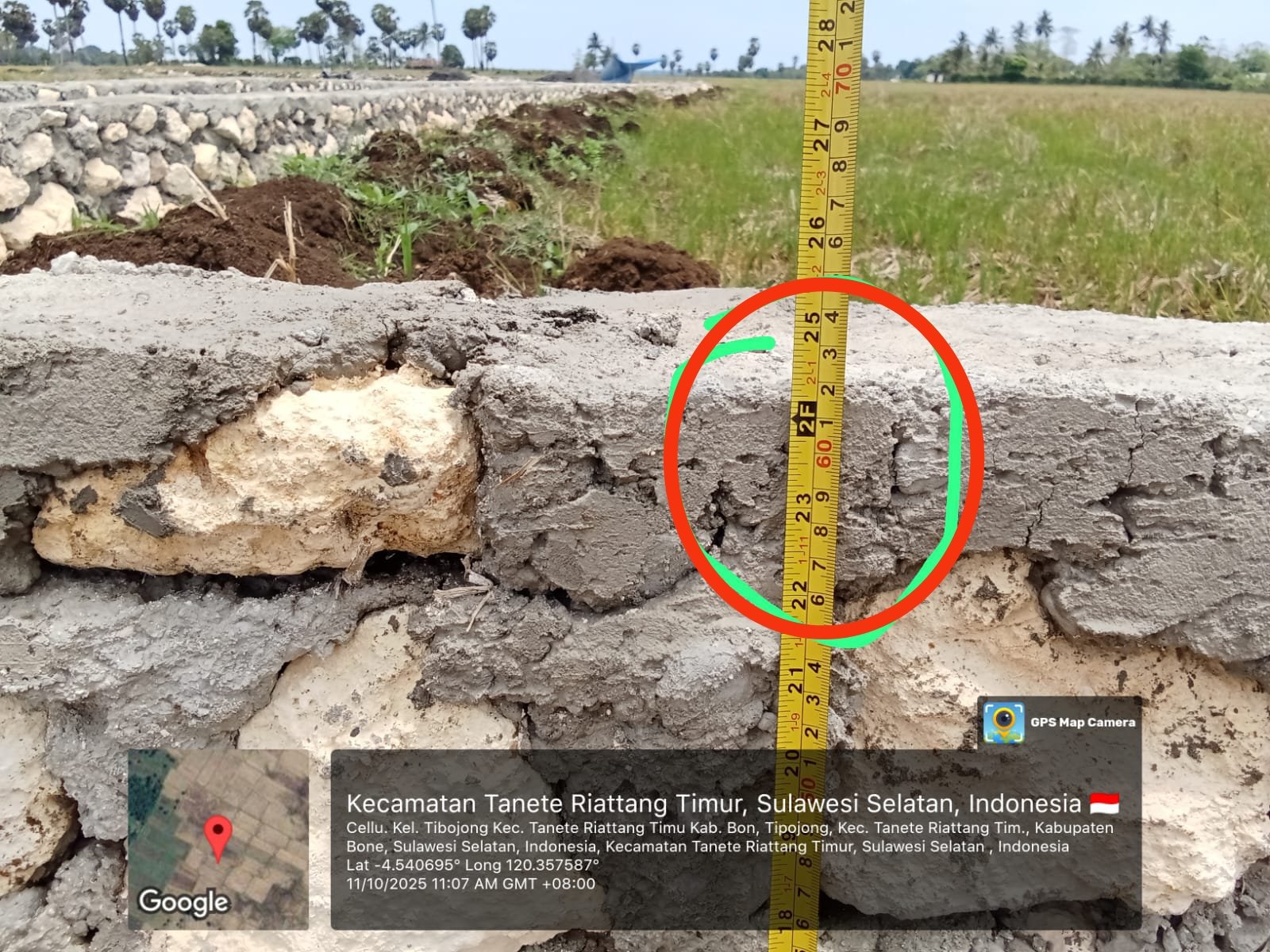 Selain upah tukang, pada proyek tersebut tampak tinggi pondasi irigasi berbeda dengan gambarnya, dimana pada gambar, tingginya 70 Cm, namun dilokasi hanya 60 Cm.