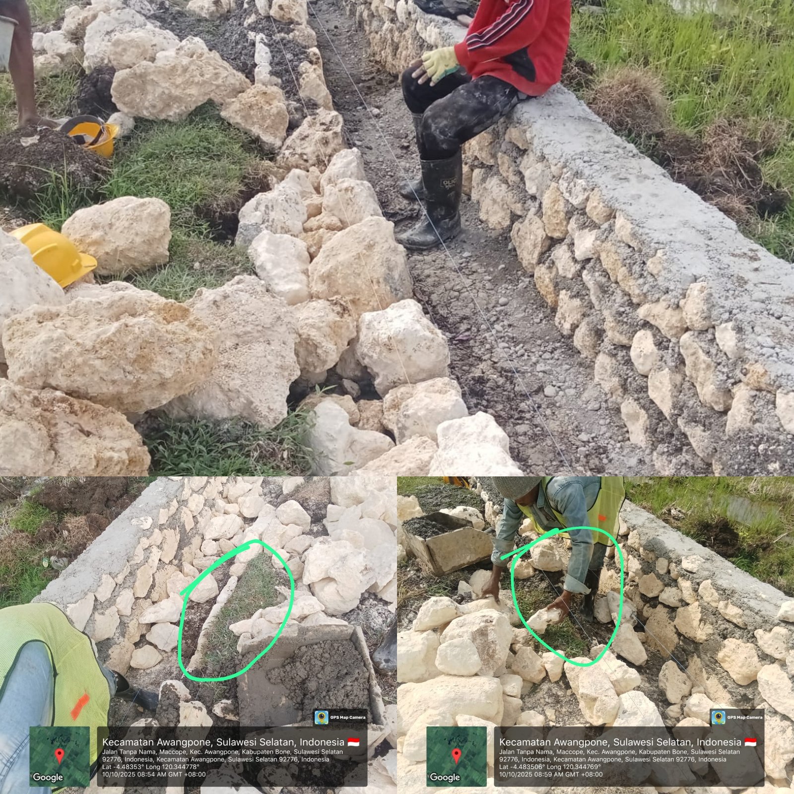 Bone, Global Terkini- Proyek irigasi Kementerian Pekerjaan Umum (PU) yang dikerjakan di Kelurahan Maccope dan Pappolo, Kecamatan Awangpone, Kabupaten Bone, terindikasi kuat tidak sesuai dengan petunjuk teknis (juknis) dasar pembangunan irigasi.