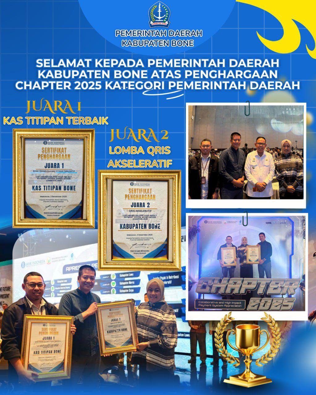 Penghargaan ini mencerminkan keseriusan Pemerintah Kabupaten Bone, khususnya Badan Pendapatan Daerah (Bapenda), dalam penggunaan QRIS sebagai sistem pembayaran non-tunai di berbagai sektor.