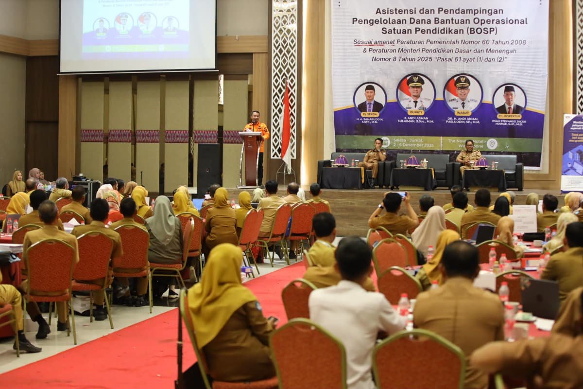 Bone, Global Terkini- Komitmen Pemerintah Kabupaten Bone dalam menjaga tata kelola pendidikan yang bersih dan berintegritas kembali ditegaskan. Bupati Bone, H. Andi Asman Sulaiman, secara resmi membuka kegiatan Asistensi dan Pendampingan Pengelolaan Dana Bantuan Operasional Satuan Pendidikan (BOSP) Tahun 2025 di Hotel Novena Watampone, Selasa, 2 Desember 2025.