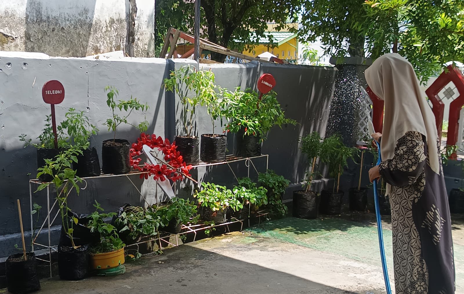 Usai kunjungan lapangan, Samsyiar kembali ke kantor lurah. Ia memanfaatkan kesempatan tersebut memperlihatkan tanaman sayuran yang ditanam di pekarangan kantor lurah, sebagai contoh pemanfaatan lahan sempit yang produktif.