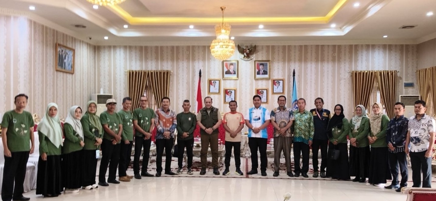 Para kepala sekolah penerima penghargaan bersama Kepala Dinas Lingkungan Hidup Bone Dray Vibrianto diterima langsung Bupati di Rumah Jabatan Bupati, Kamis, 4 Desember 2025. Momentum itu menjadi penegasan, sekolah ditempatkan sebagai garda terdepan gerakan lingkungan.