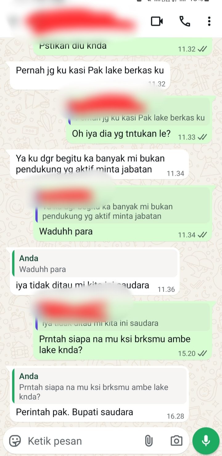 Seorang ASN yang meminta identitasnya dirahasiakan mengaku mendapat perintah langsung dari Bupati Mamasa, Welem Sambolangi, saat pertemuan di Rumah Jabatan beberapa bulan lalu.