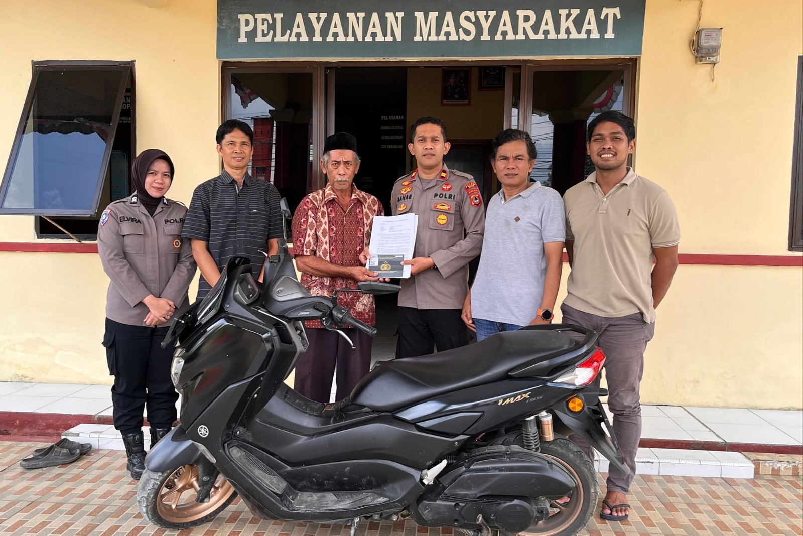 Bone, Global Terkini- Aksi cepat jajaran Polsek Palakka membuahkan hasil. Sepeda motor Yamaha NMAX milik seorang pengurus masjid yang hilang di awal Ramadan akhirnya berhasil ditemukan setelah 20 hari pencarian intensif.