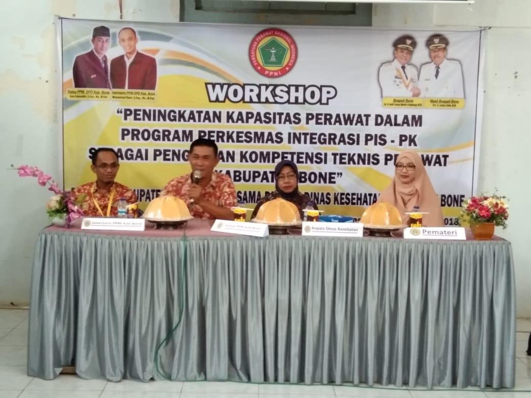 Dalam sambutannya, ketua DPD PPNI, Ns Ince Kaimuddin mengatakan, di era program indonesia sehat dengan pendekatan keluarga (PIS-PK) sebagai program prioritas kementerian kesehatan, perawat di puskesmas sebagai ujung tombak pelayanan kesehatan masyarakat sangat layak mengambil peran dalam mengaplikasikan ilmu dan keterampilannya dalam program tersebut, sehingga DPD PPNI sebagai organisasi yang menaungi dan mewadahi perawat di Bone berinisiatif melaksanakan kegiatan tersebut sebagaimana tertuang dalam rencana kerja DPD PPNI tahun 2018.