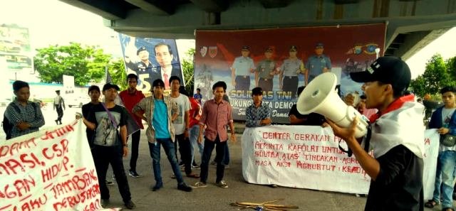 Makassar, Global Terkini.com – Siang tadi, Jumat 8 Maret 2019 sekitar pukul 02.30 wita, ratusan mahasiswa yang tergabung dalam Center Gerakan Mahasiswa Sulawesi Tenggara (Sultra), menggelar aksi unjuk rasa di plyover, jalan Urip Sumoharjo Makassar. Dalam aksi tersebut, mahasiswa menuntut Kapolri Jenderal Tito Karnavian mencopot Kapolda Sultra, Brigjen Pol Iriyanto dari jabatannya, karena di anggap tidak mampu menegakkan supremasi hukum, terkait kekerasan yang dialami sejumlah mahasiswa saat aksi demo di halaman kantor Gubernur Sultra beberapa hari lalu.